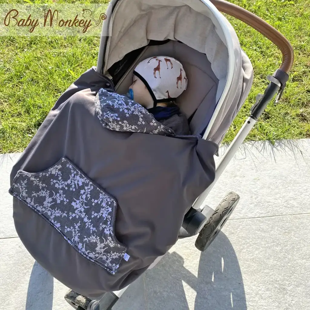 El Cobertor de porteo Baby Monkey Flora Gris se puede utilizar también para cubrir las piernas del bebé tanto en el cochecito como en la sillita del coche.