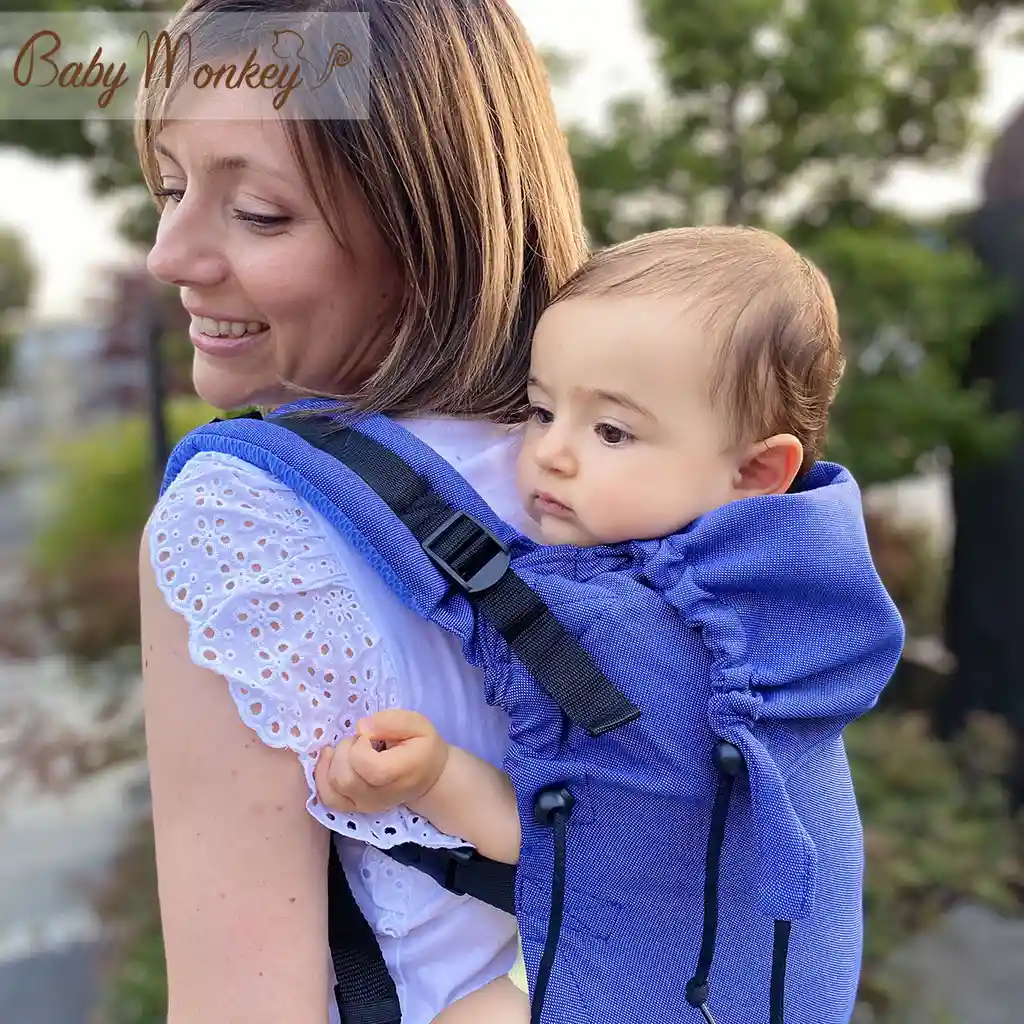 La mochila portabebés La Mochila Baby Monkey Regolo Original Essential Azul Oscuro cumple con los más altos estándares de seguridad infantil. Cuenta con cierres y sujeciones robustas, correas ajustables y acolchadas, así como un sistema de sujeción para la cabeza del bebé, proporcionando tranquilidad y protección en cada paso.
