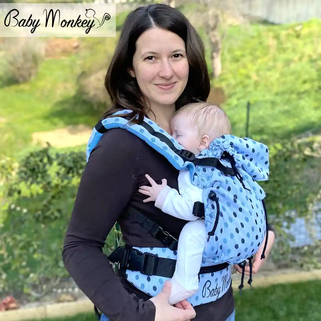 Diseño ergonómico y ajustable para un transporte cómodo con la Baby Monkey Regolo Recién Nacido Pois Celeste